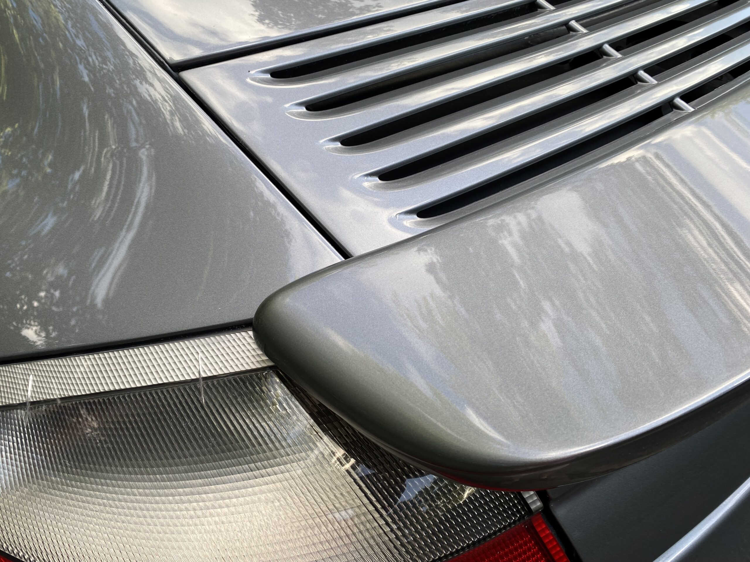 Full repaint in house was performed to our demanding standards, done with all glass out doors disassembled light off and its turbo tail taken apart for upgrades. All bolt on body panels including its bumpers door handles, fenders, air intakes were painted off the body including door jambs for a uniform flawless original appearance.